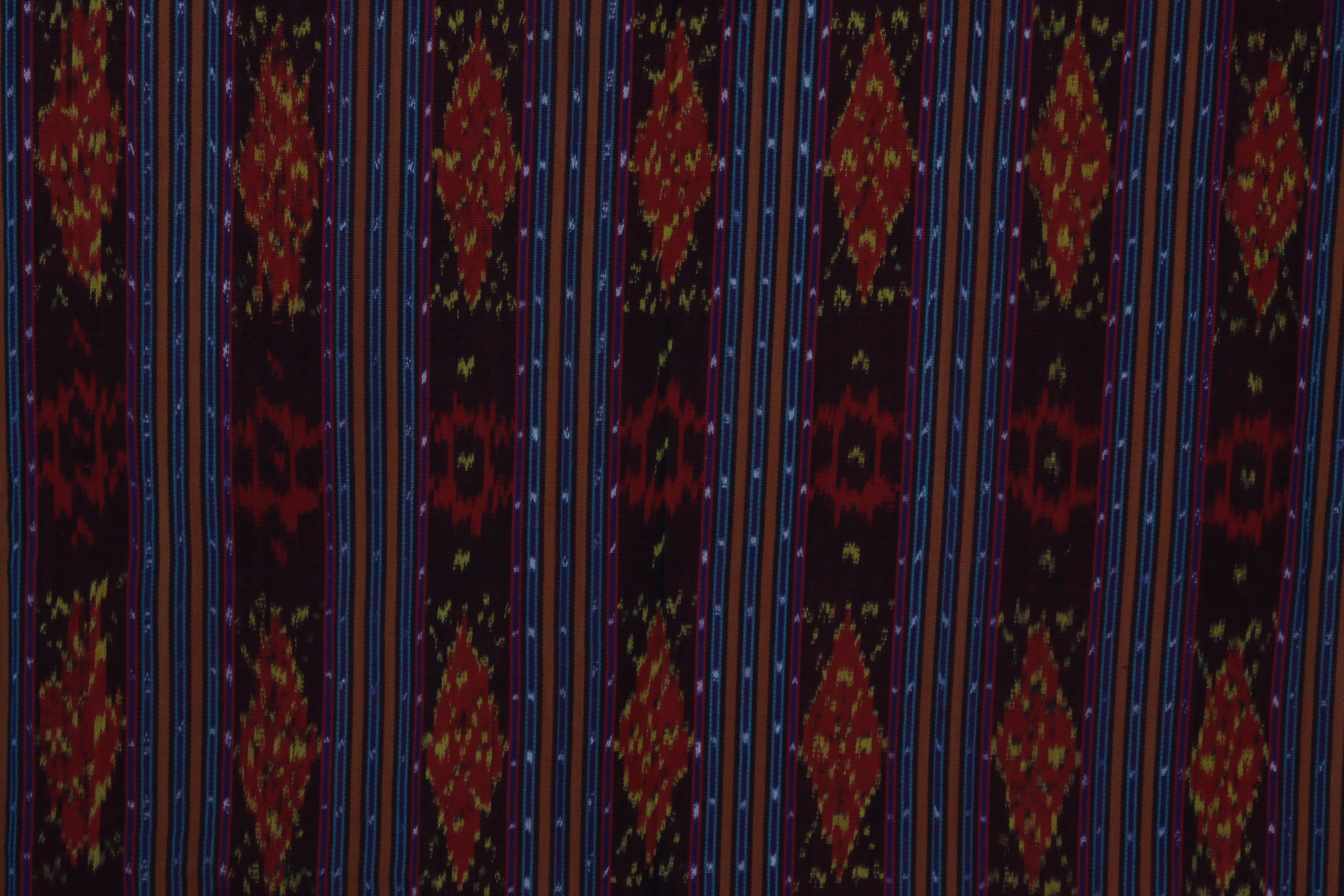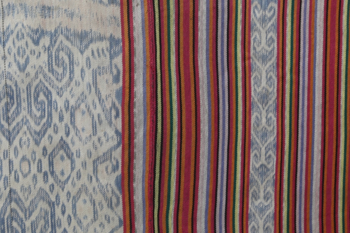 Les larmes de Shiva, contemplant sa création sans pouvoir fermer les yeux sous peine de la détruire, se posent sur le motif qui s'enfuit du tissus comme un regard glisse. Procédé de teinture, et de tissage, l'Ikat est l'un des enfants raffinés d'Indonésie.