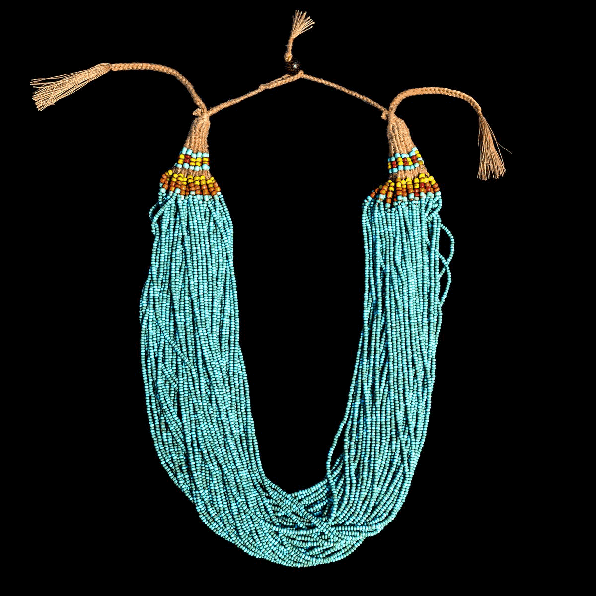 Collier Naga en graines de verre et fibre végétale