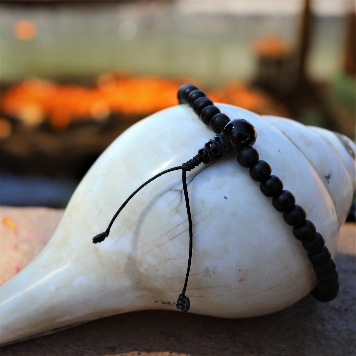Le bracelet quant à lui est constitué de 24 perles. Ce nombre représente en fait le maximum de combinaisons qui peut être fait grâce aux 4 attributs de Vishnou. De fait, certains shaligram sont décorés par les 4 attributs du dieu : le disque, la conque, le lotus et la massue. En fonction de l'ordre dans lequel ils sont disposés, le shaligram ne possédera pas la même signification ni les mêmes effets, ni le même nom que les autres ! Ainsi, il existe 24 versions de shaligram liées à Vishnu, ses avatars...