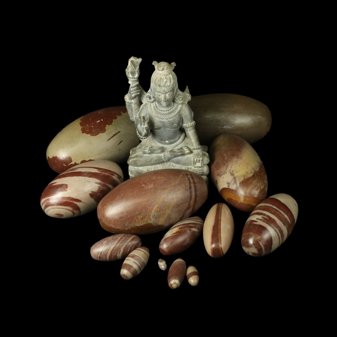 La pierre de « Shiva lingam » est composé de Jaspe et se collecte dans la rivière Narmada, dans les hautes montagnes de Mandhara, un des 7 lieux sacrés connu pour ces pèlerinages en Inde. Cette pierre, le Linga ou Lingam d'une incroyable puissance représente l'union sacré de Shiva et de son épouse Parvati.
